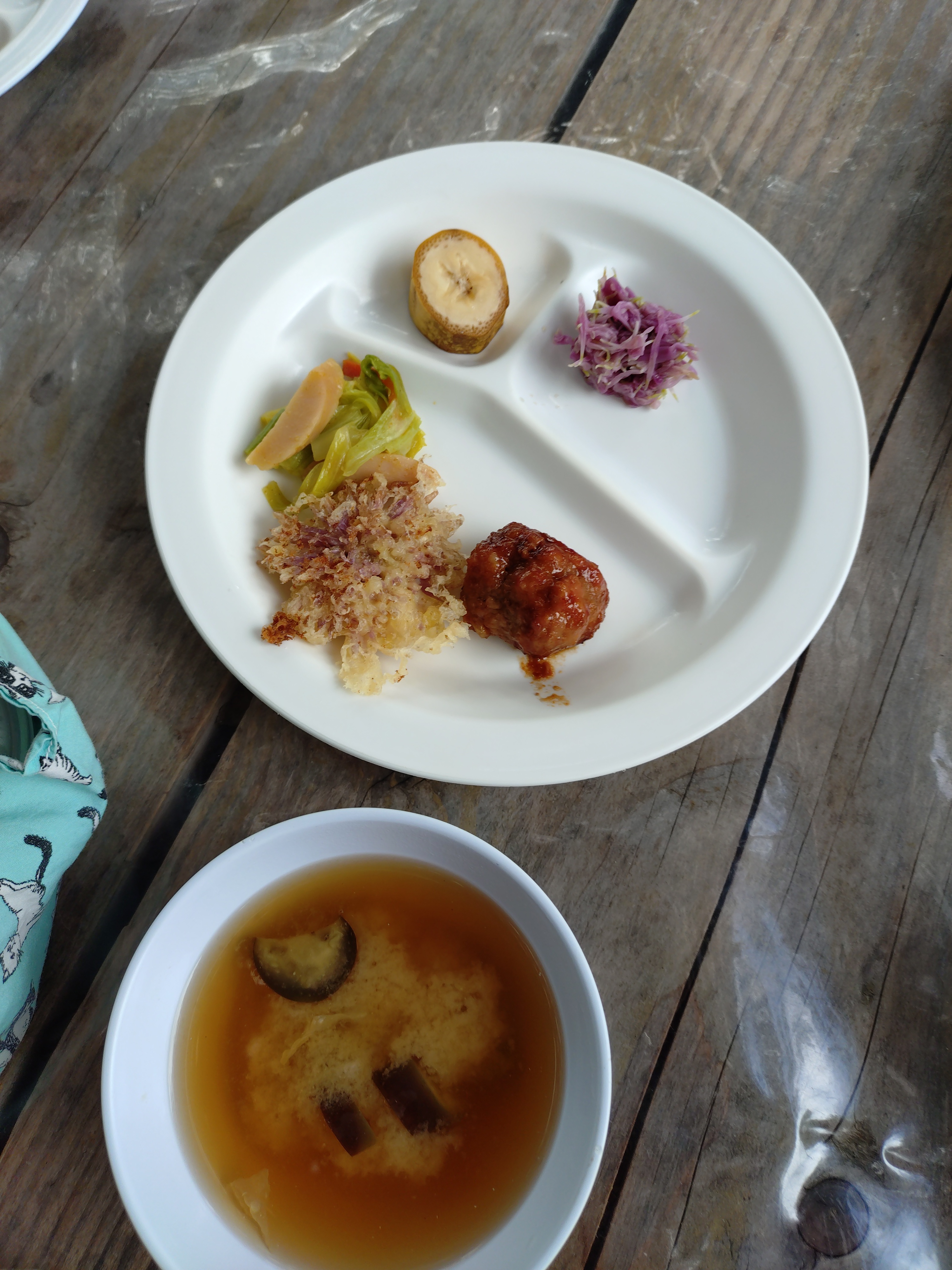 ピンクの食用菊をいただいたので、みんなで散らして給食で食べてみました♬