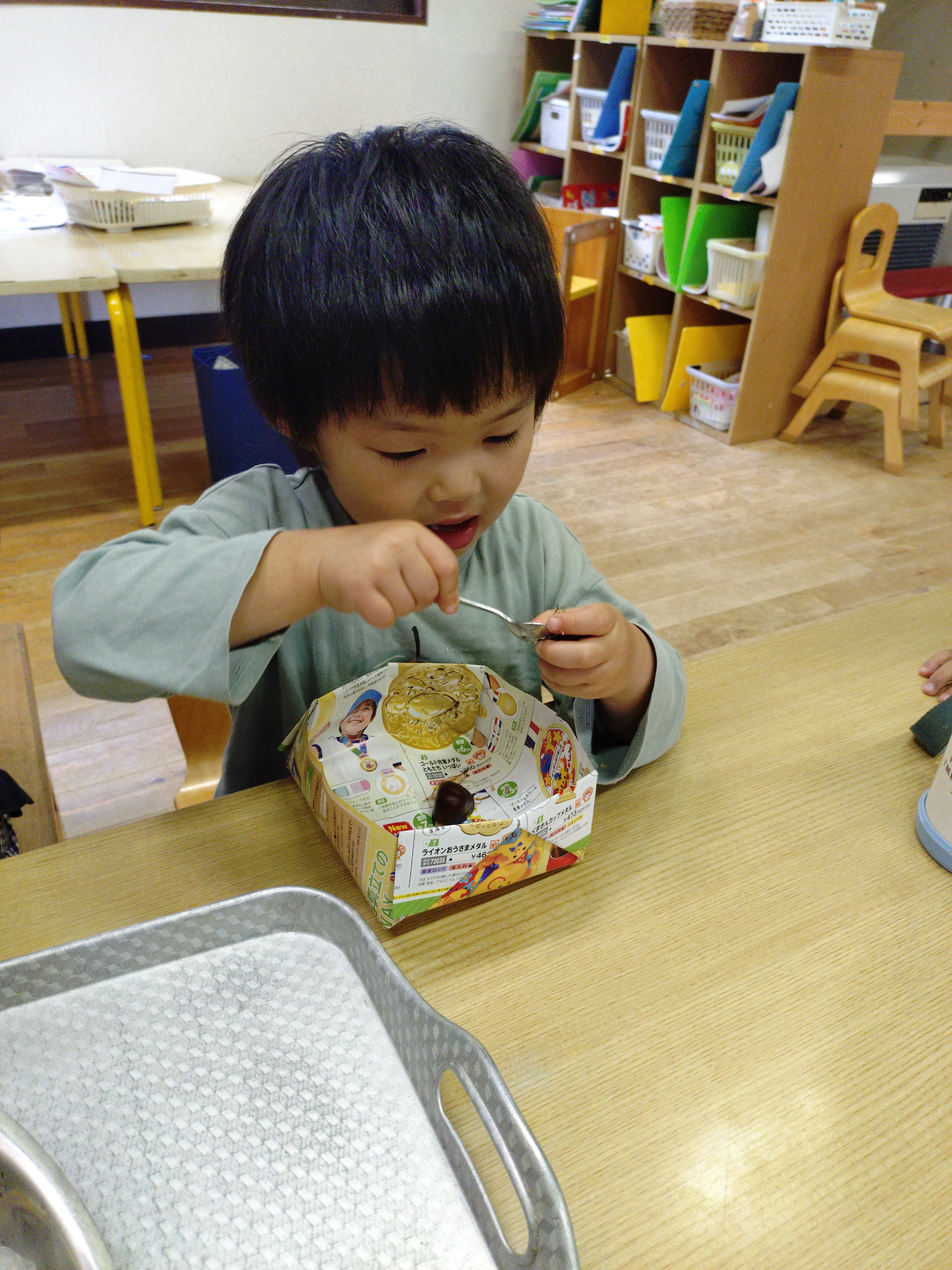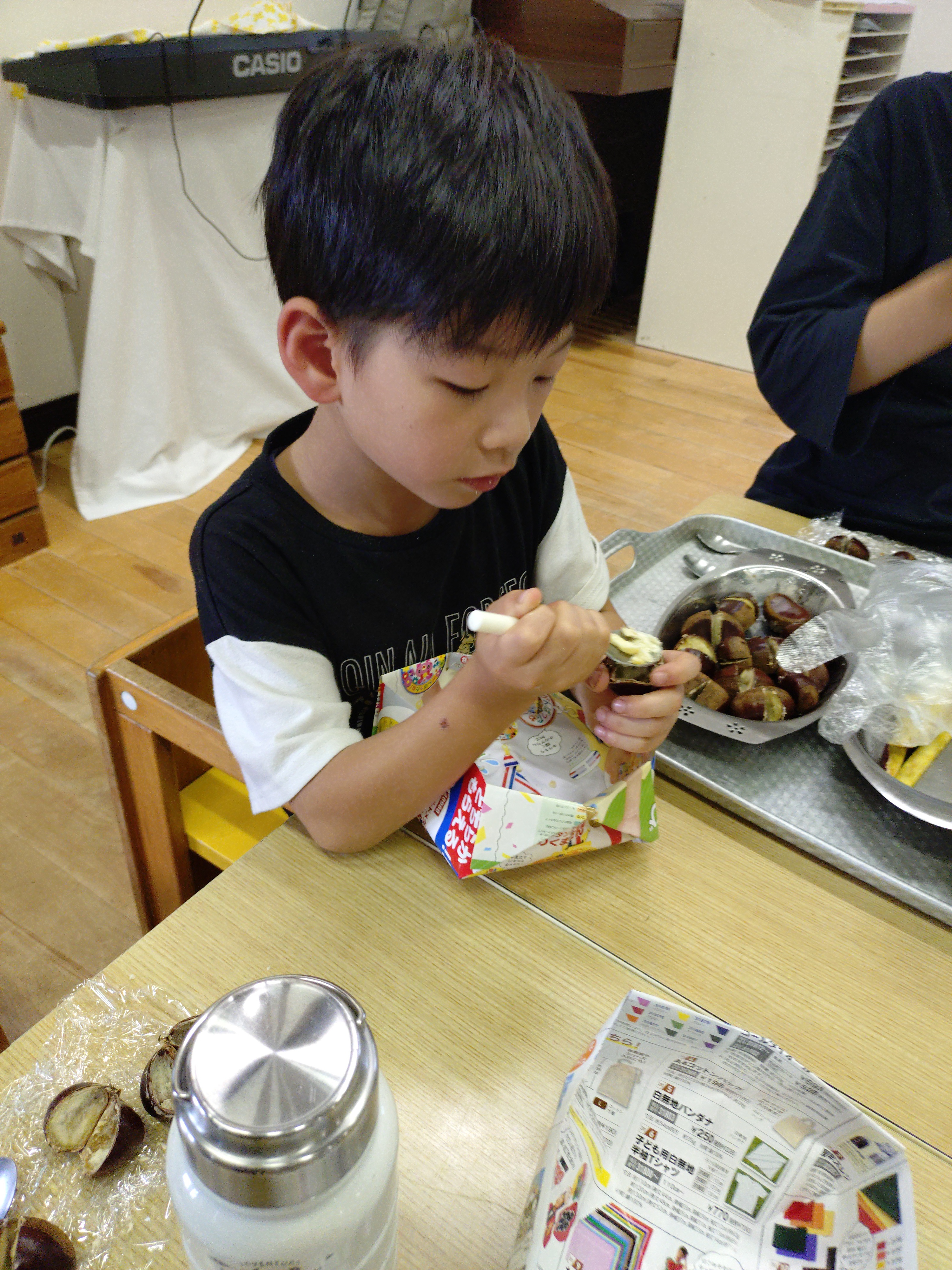 秋の味はおやつにも♪ゆでぐりに「やった~!!」と喜ぶ子どもたち