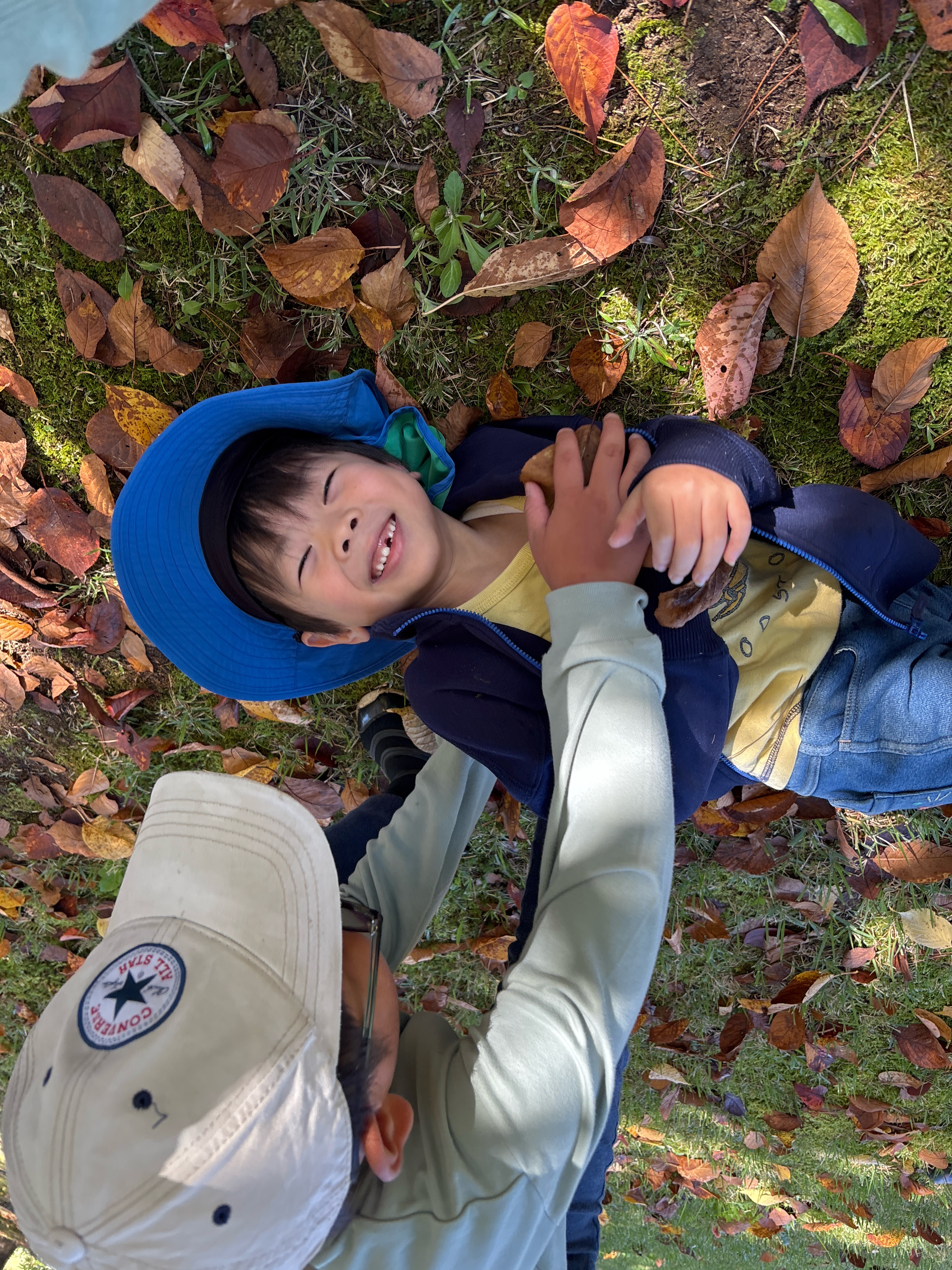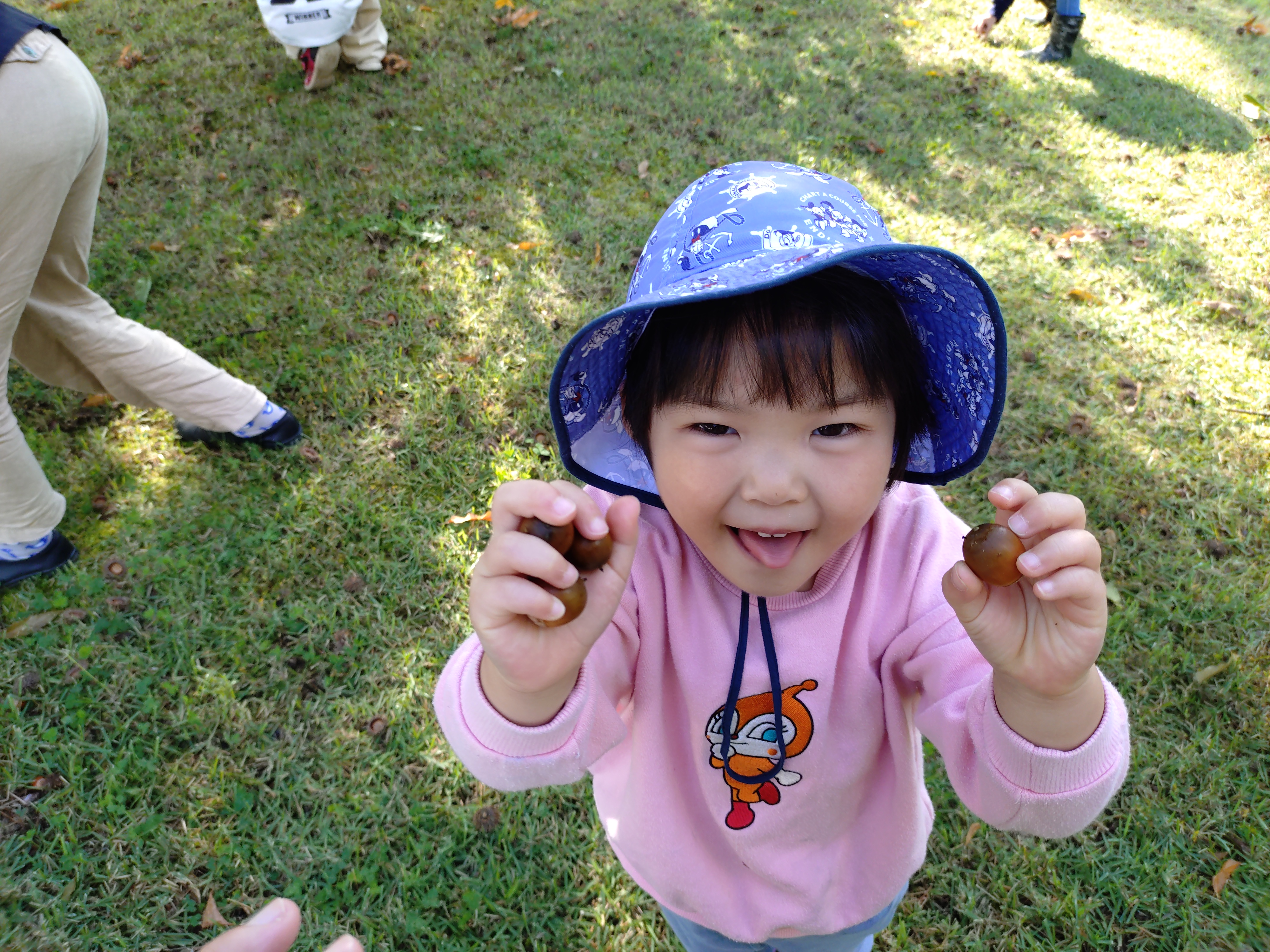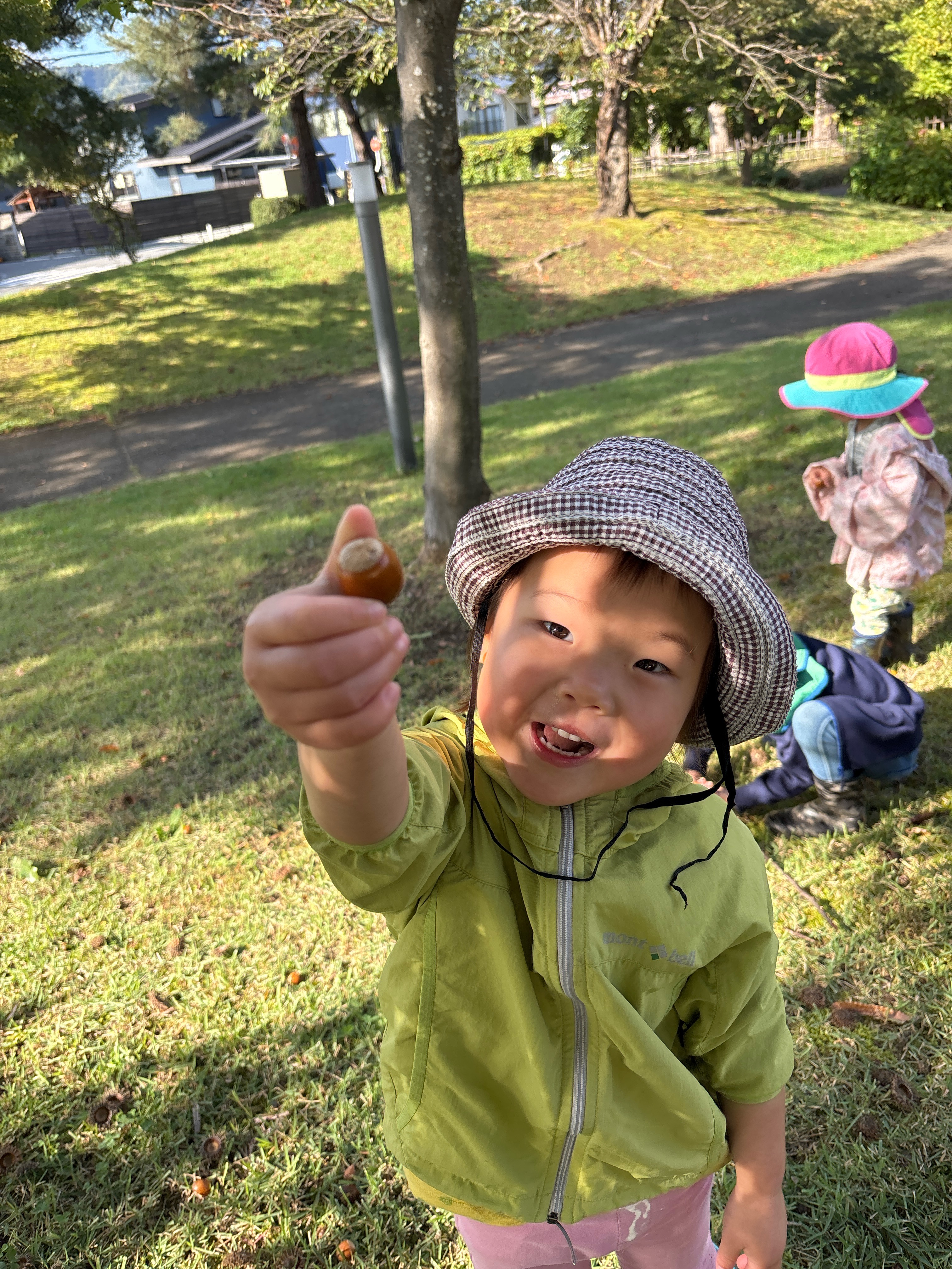 たくさん落ちている大きなどんぐりに大喜びな子どもたち😆