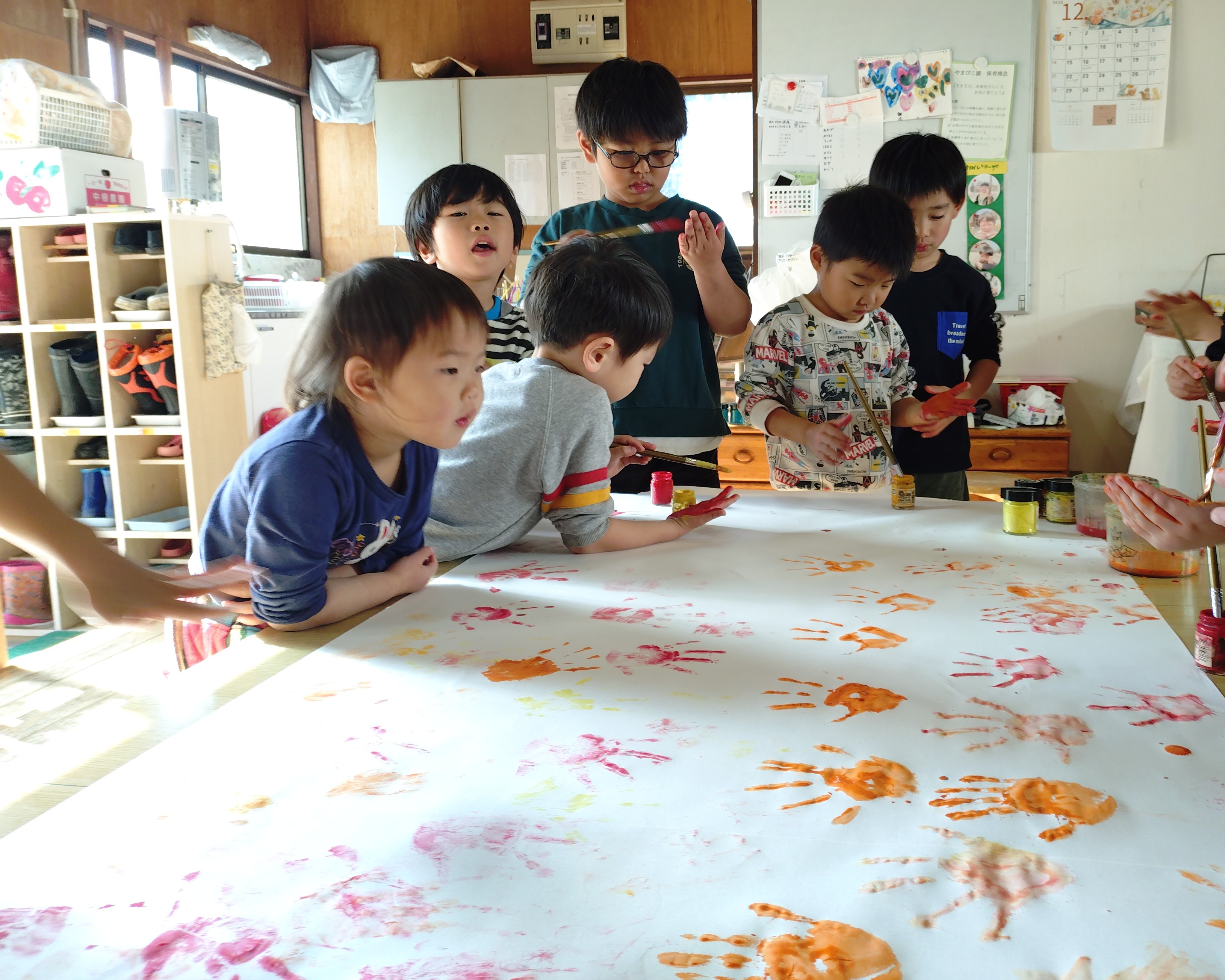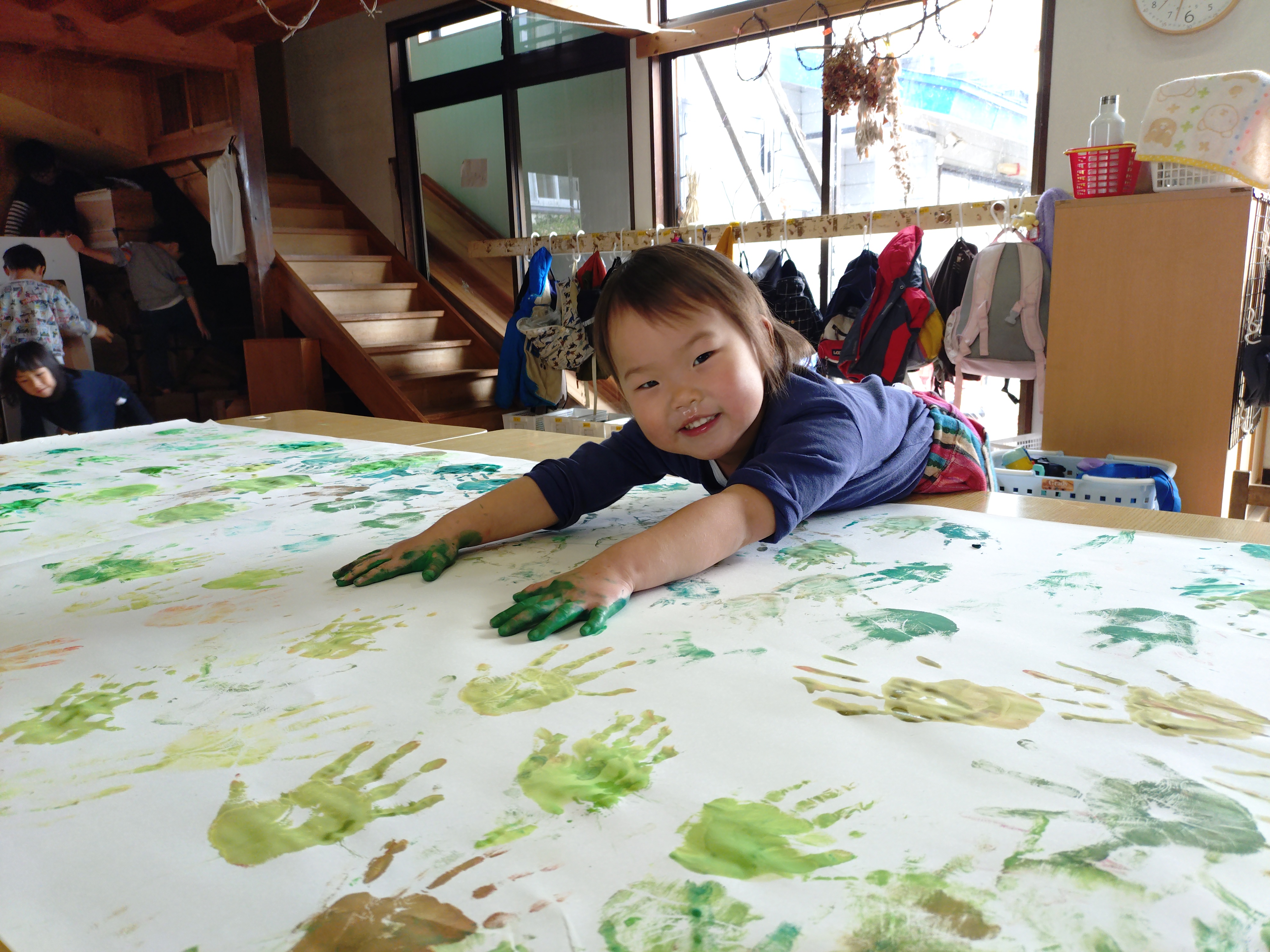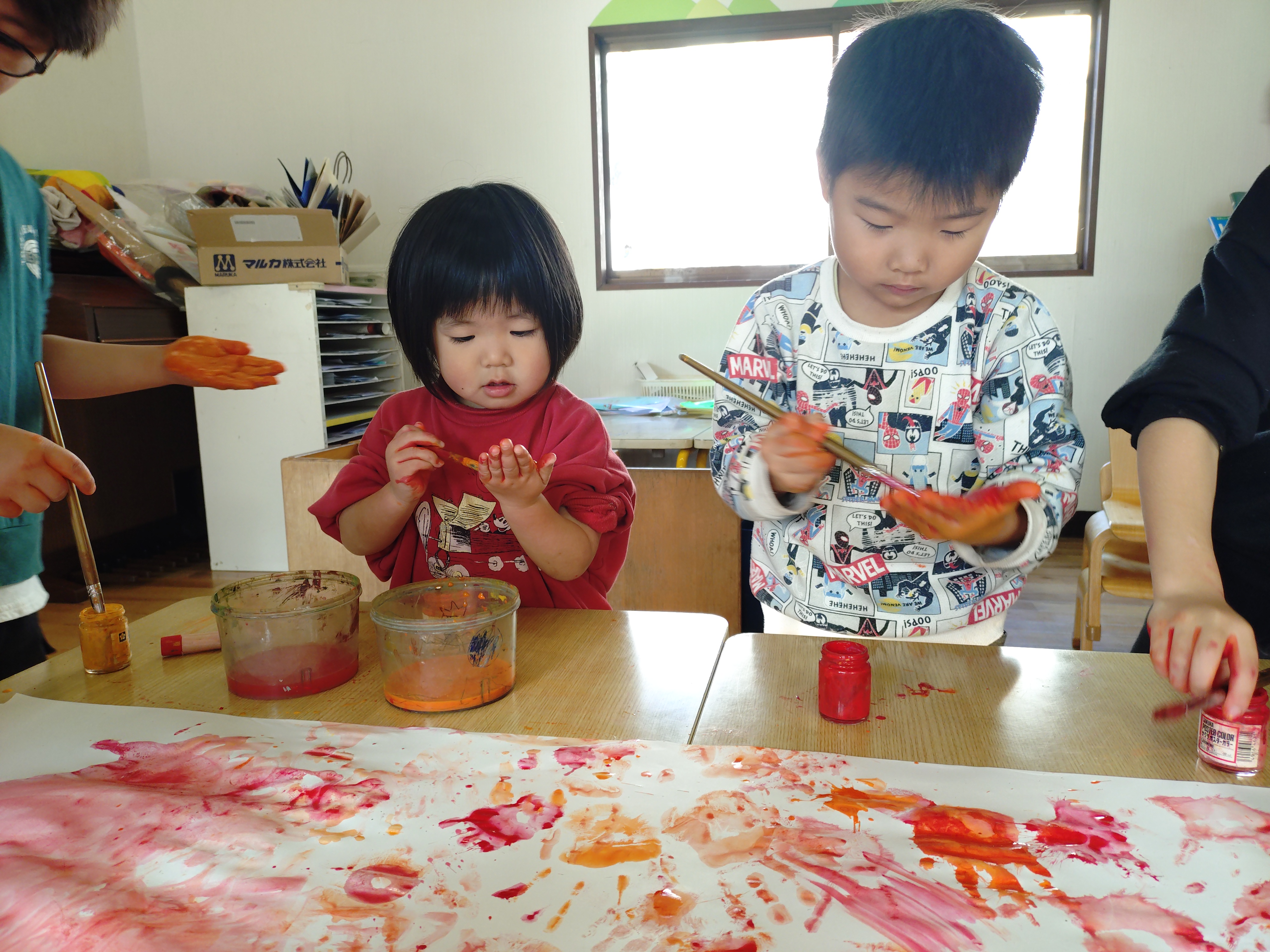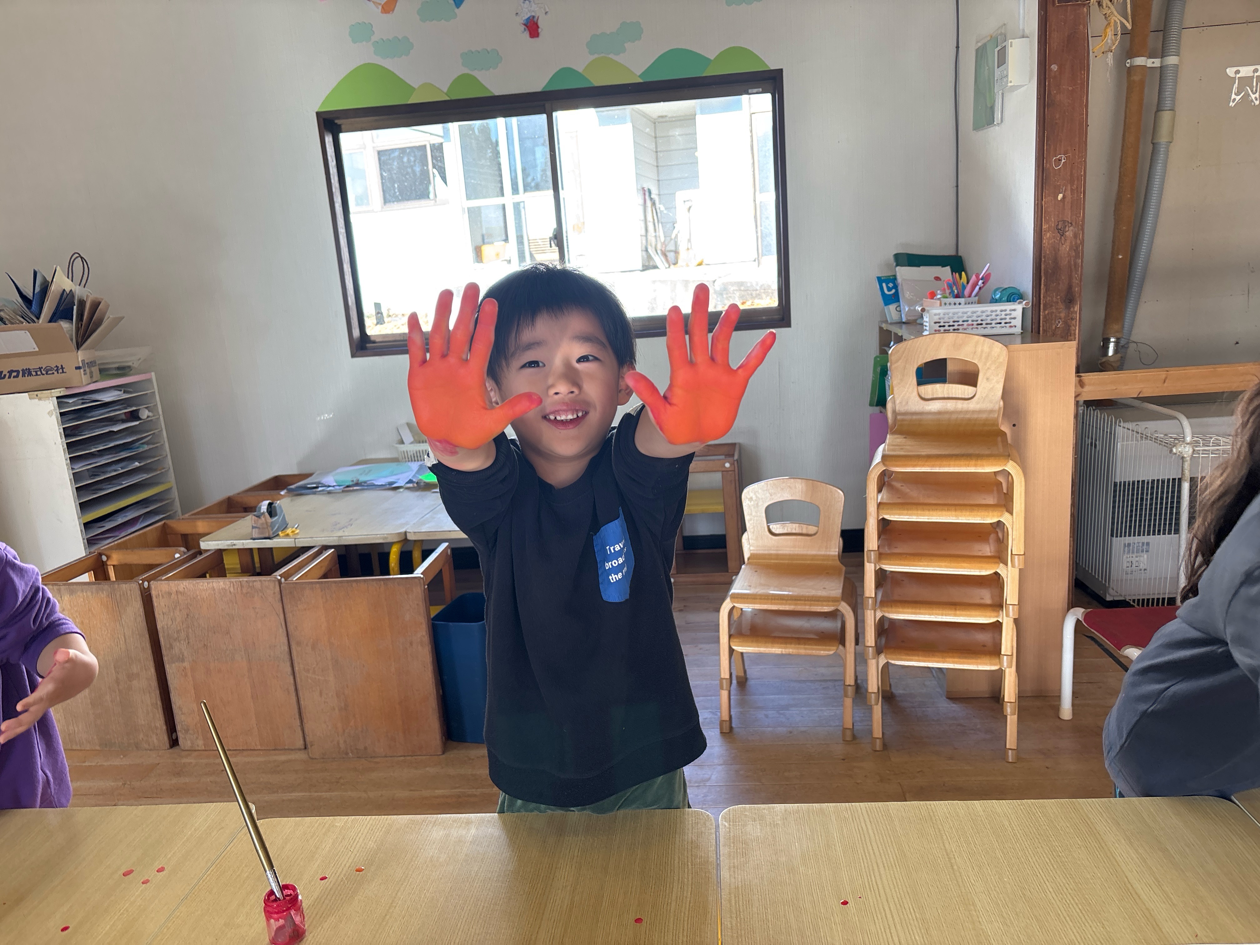 筆で手に塗り、そのまま紙にぺたぺた🌟