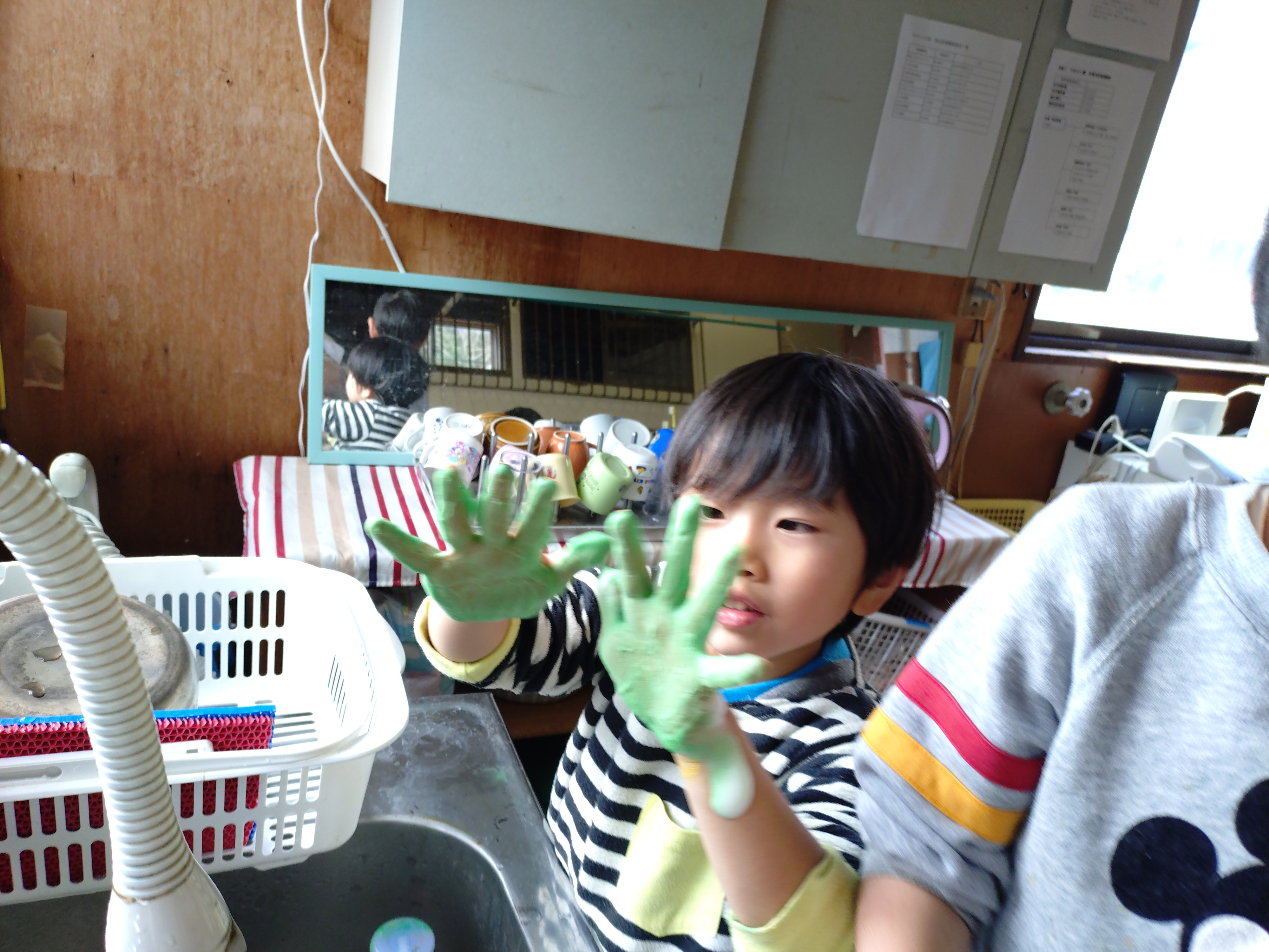 手を洗うと今度は「わあ!色が変わった!!」と、泡の色の変化を楽しむ子も♫