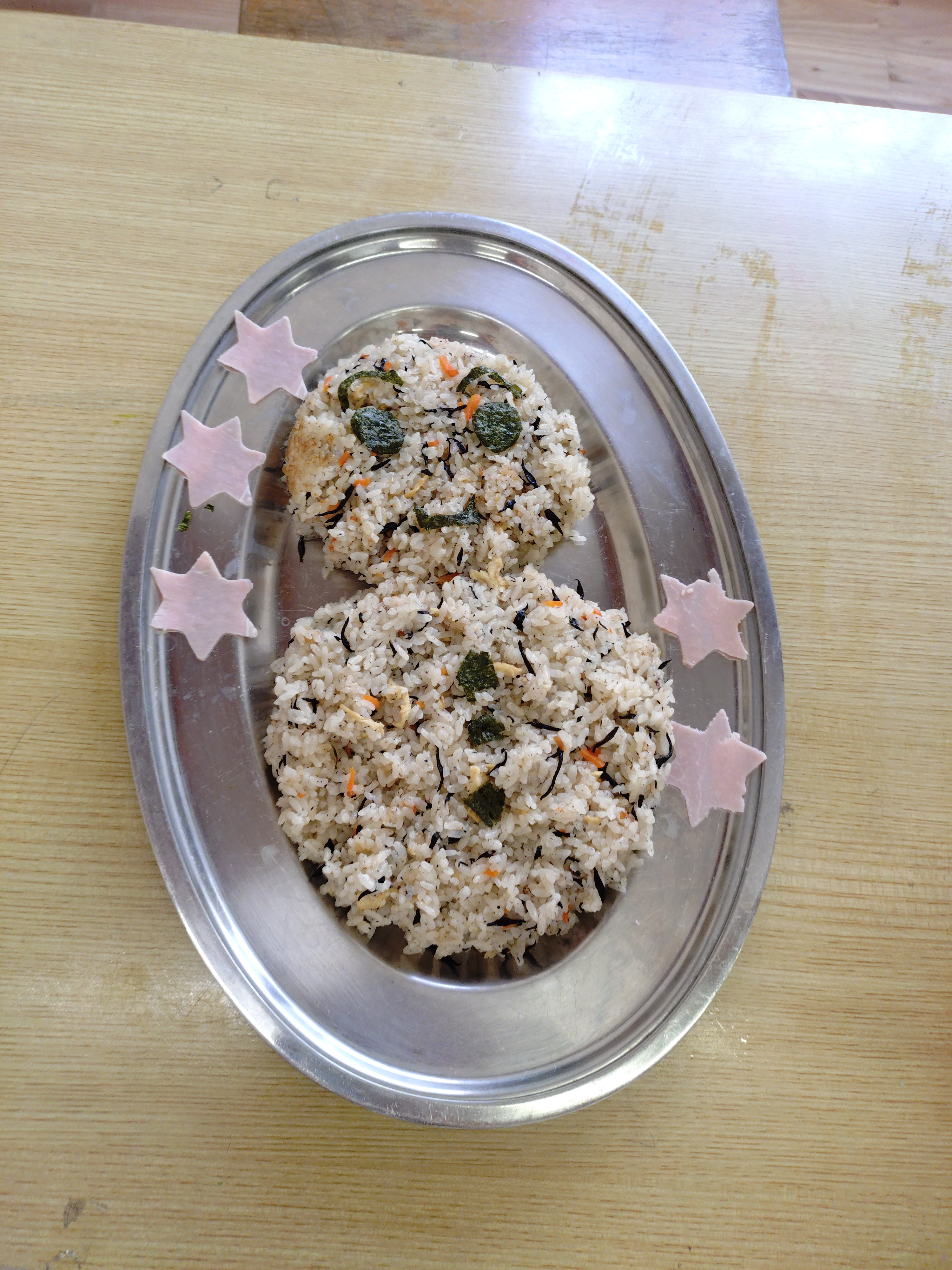この日の給食はお誕生日の子のリクエストメニューで、さらにクリスマス仕様になっています🌟