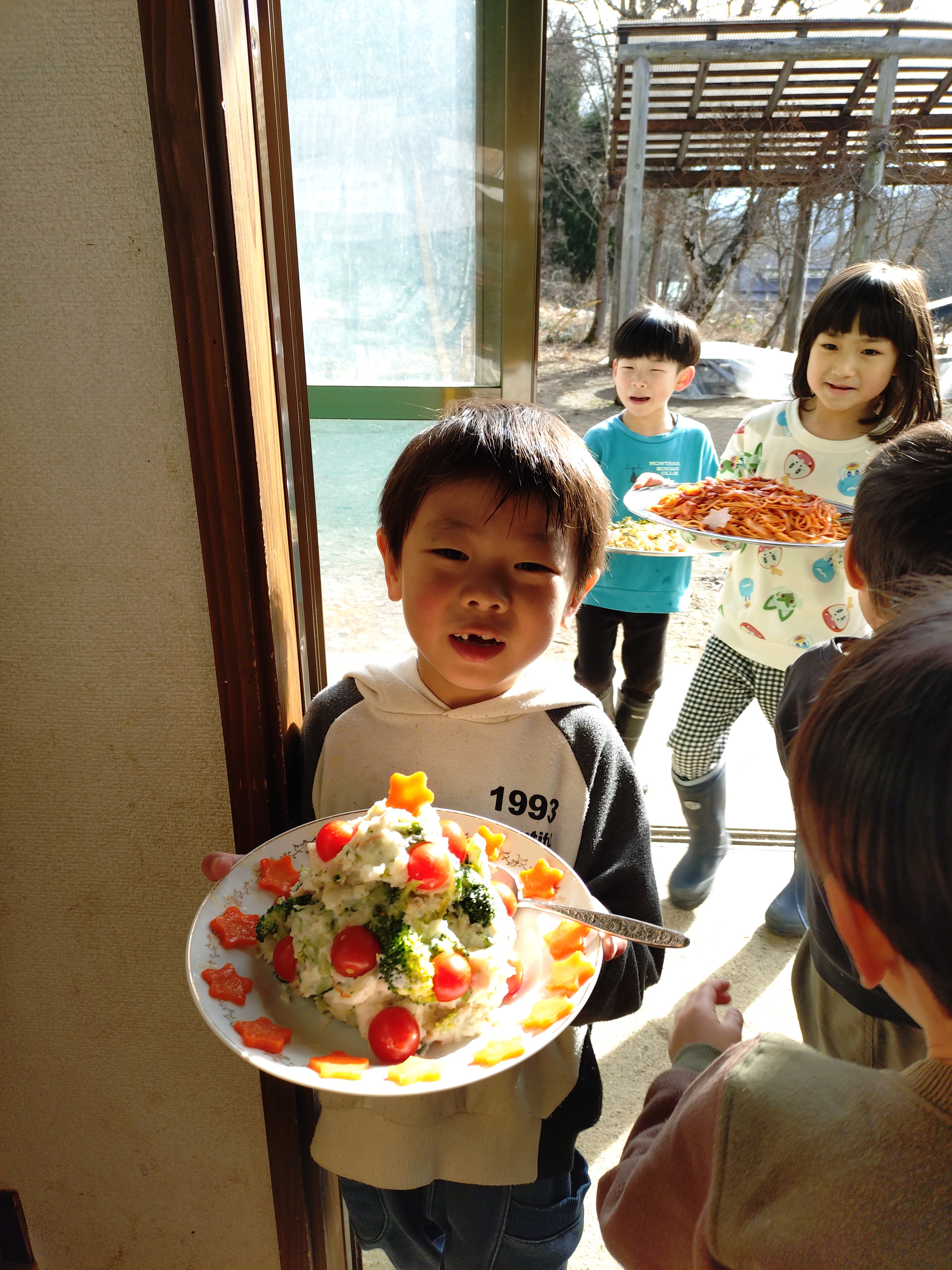 おかわりも大盛況で、もりもり元気に食べるやまびこ園のみんなでした🎄