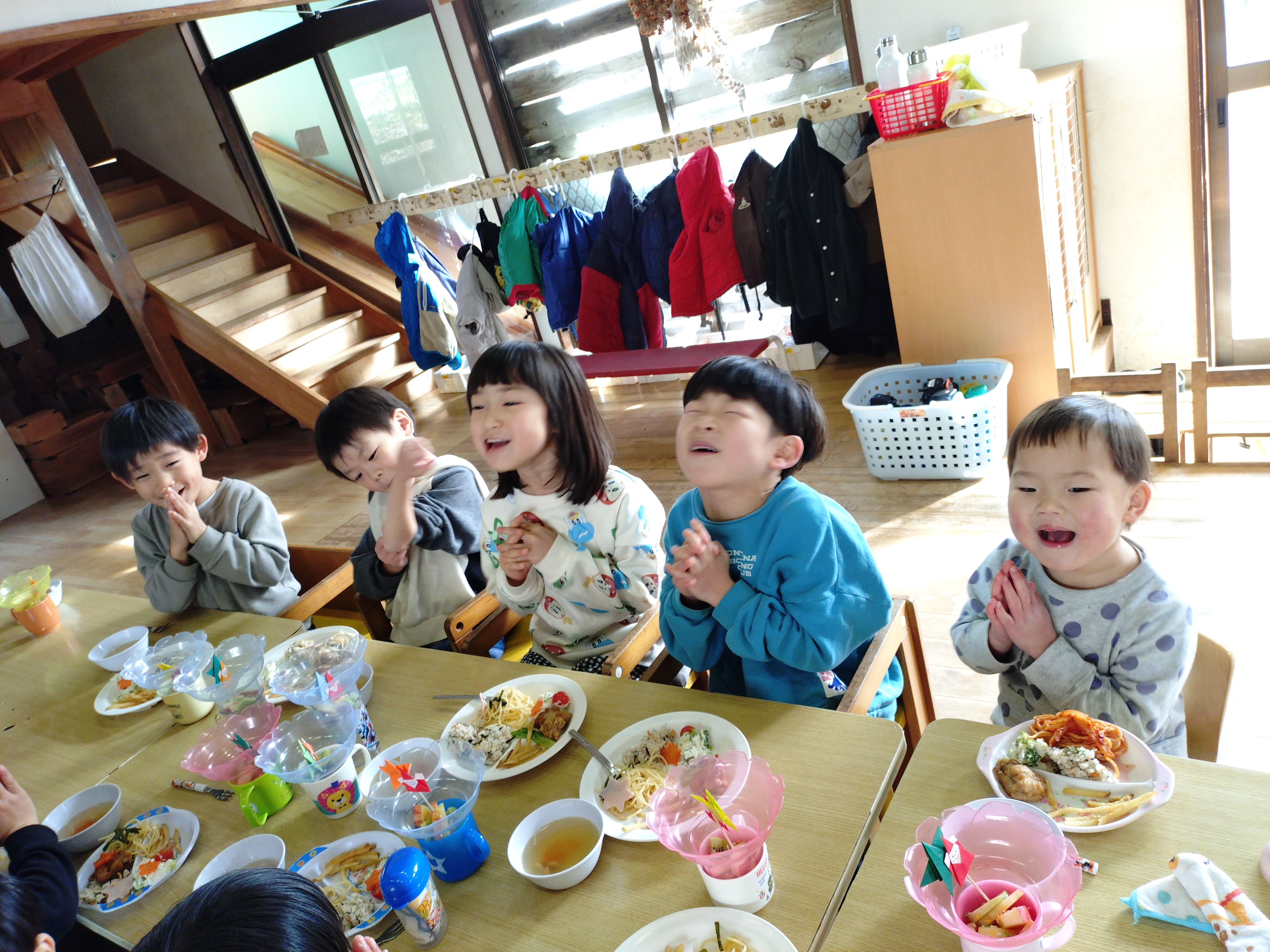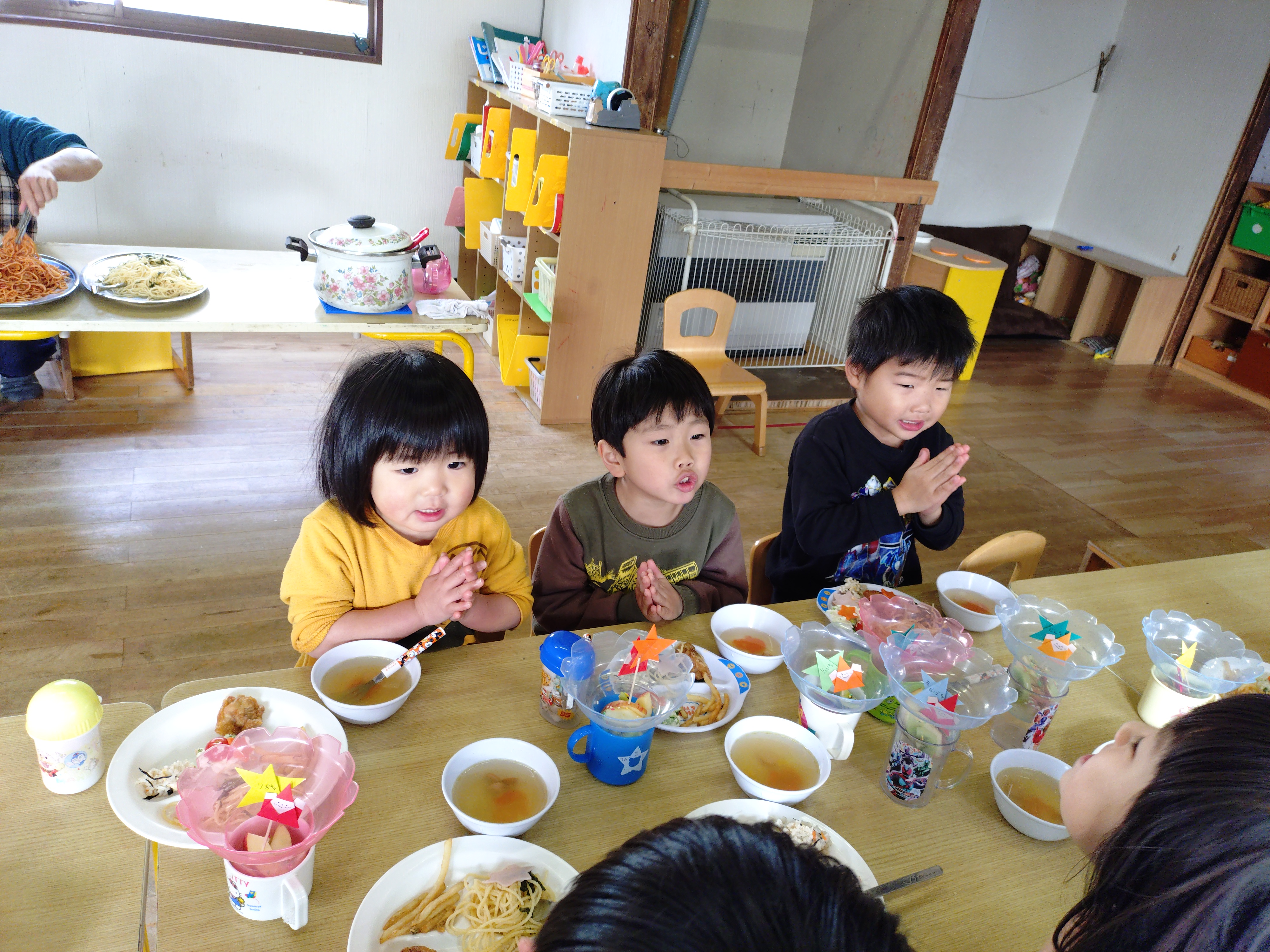「わあ~✨」とそわそわと給食の準備を始めました🤗