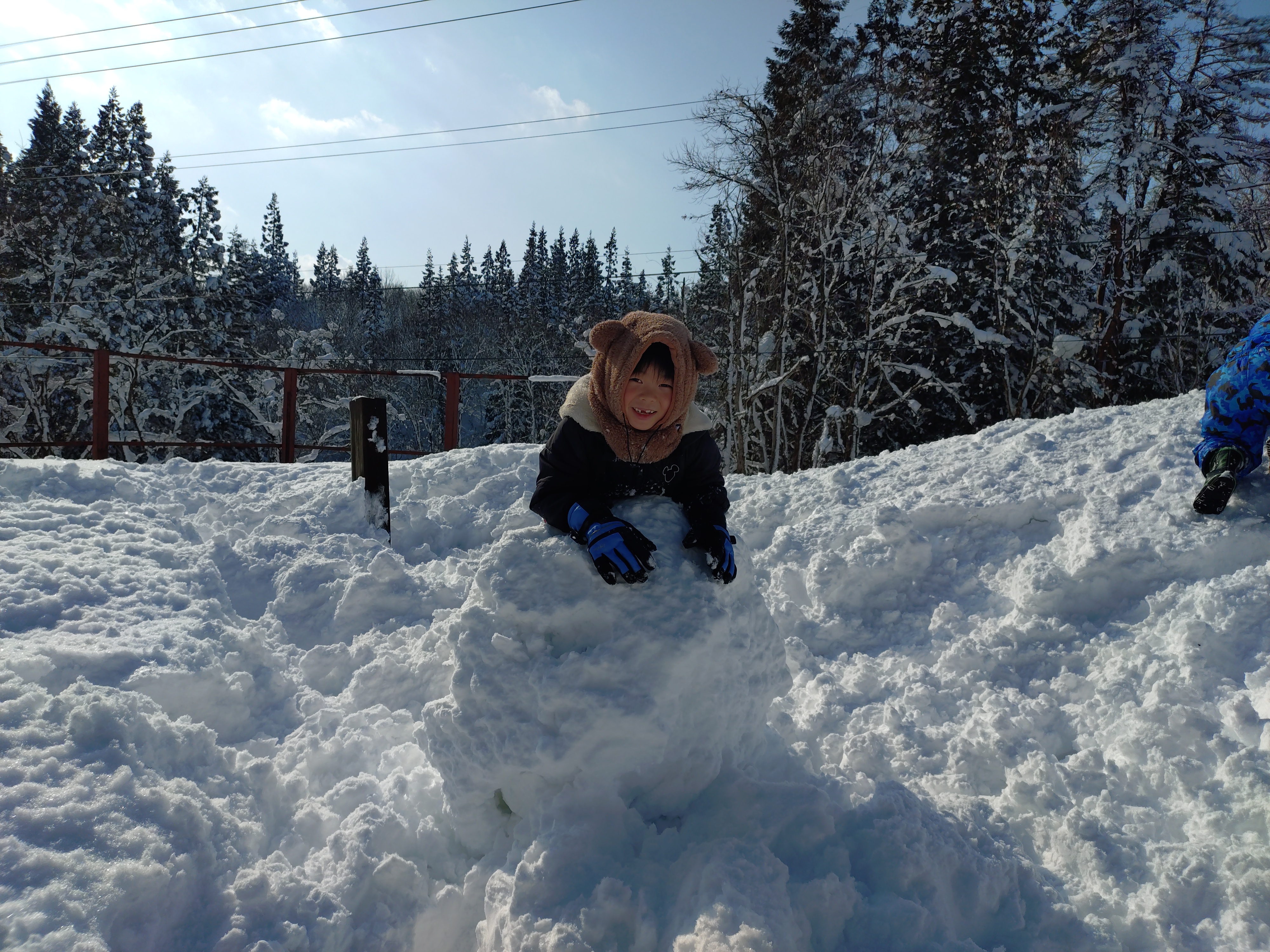 1月はもさもさ積もる雪なので、そり遊びはお休みで雪だるま作りも♫