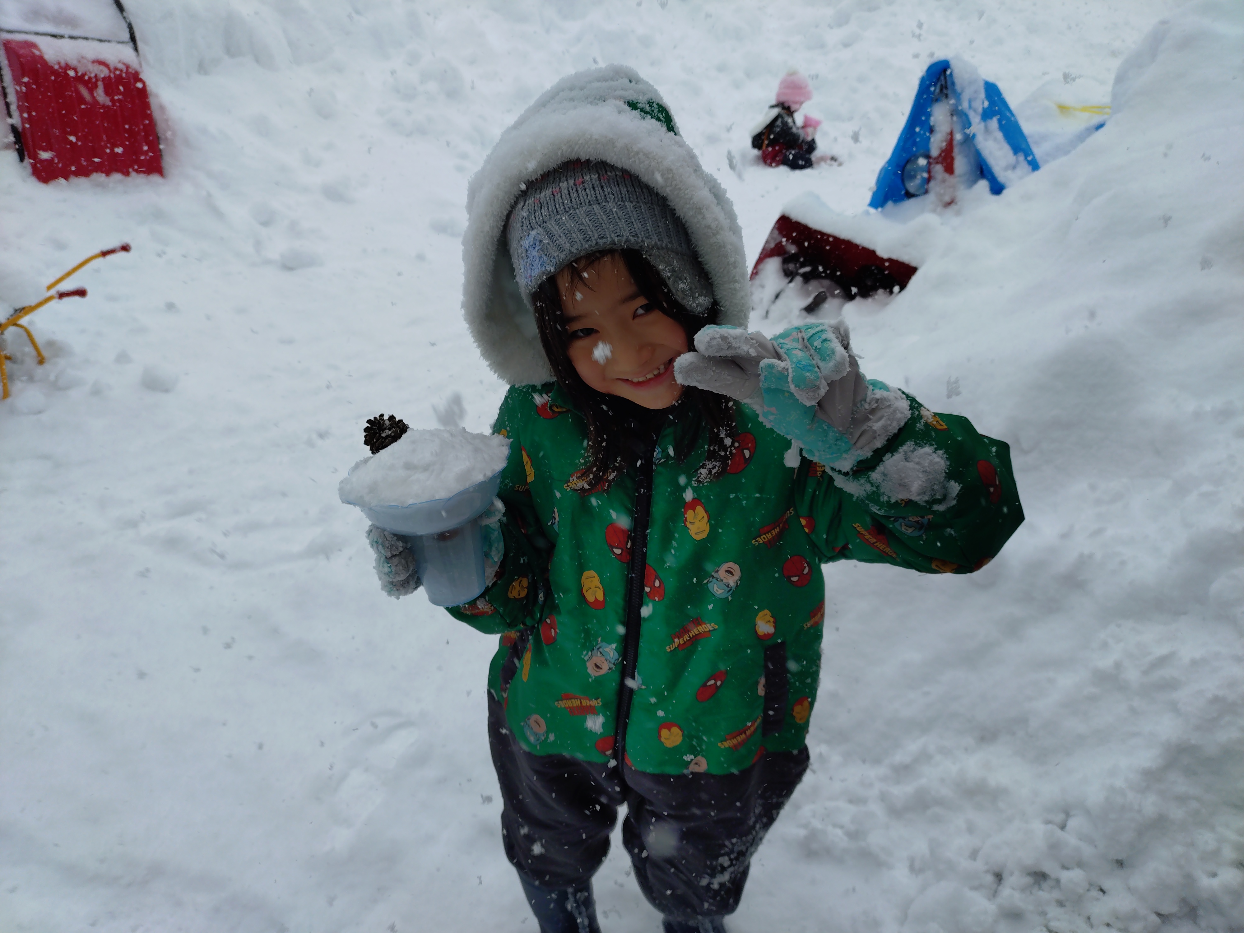 毎日のように園庭の雪山でお尻滑りを楽しむのはもちろんのこと。