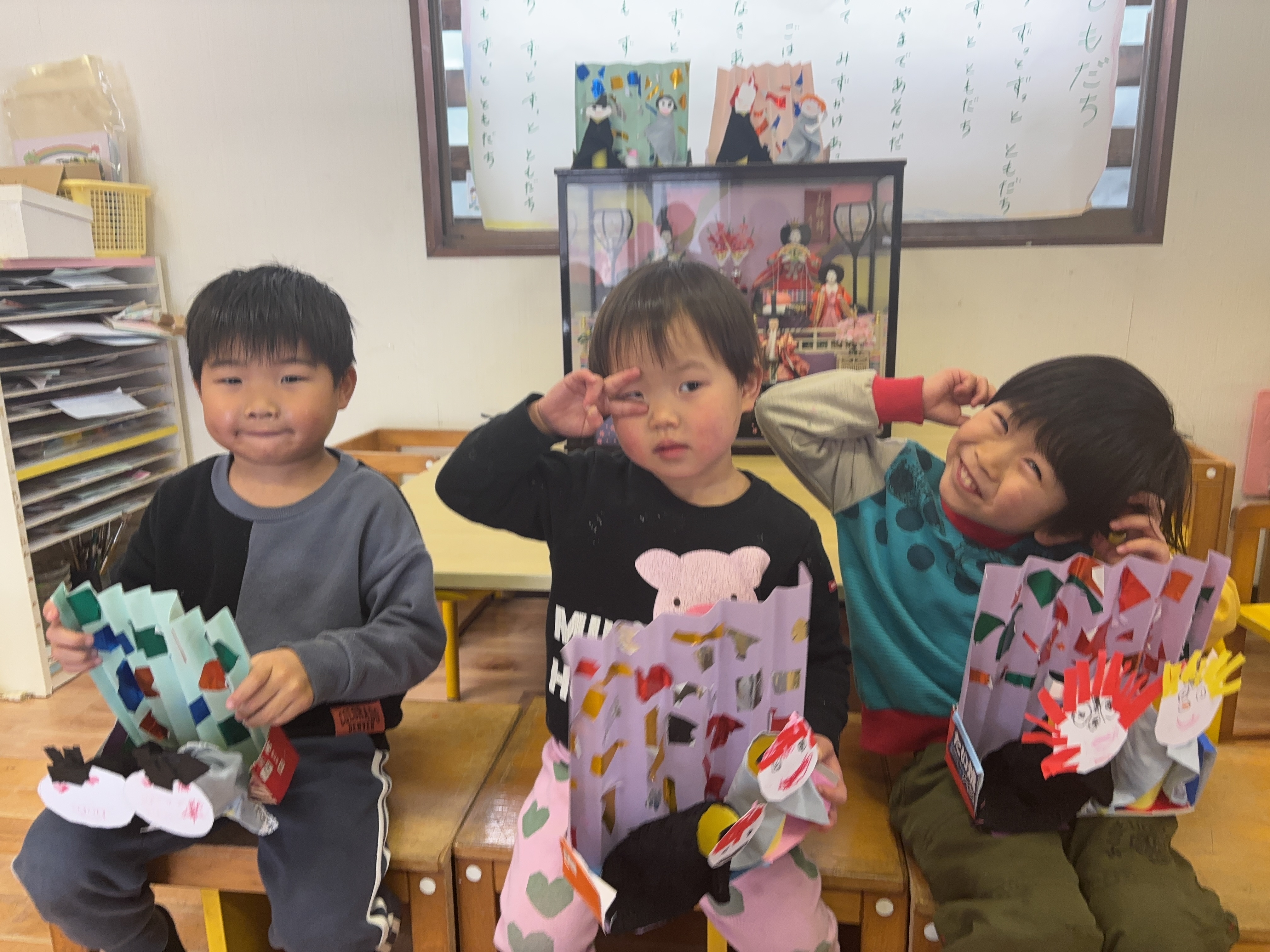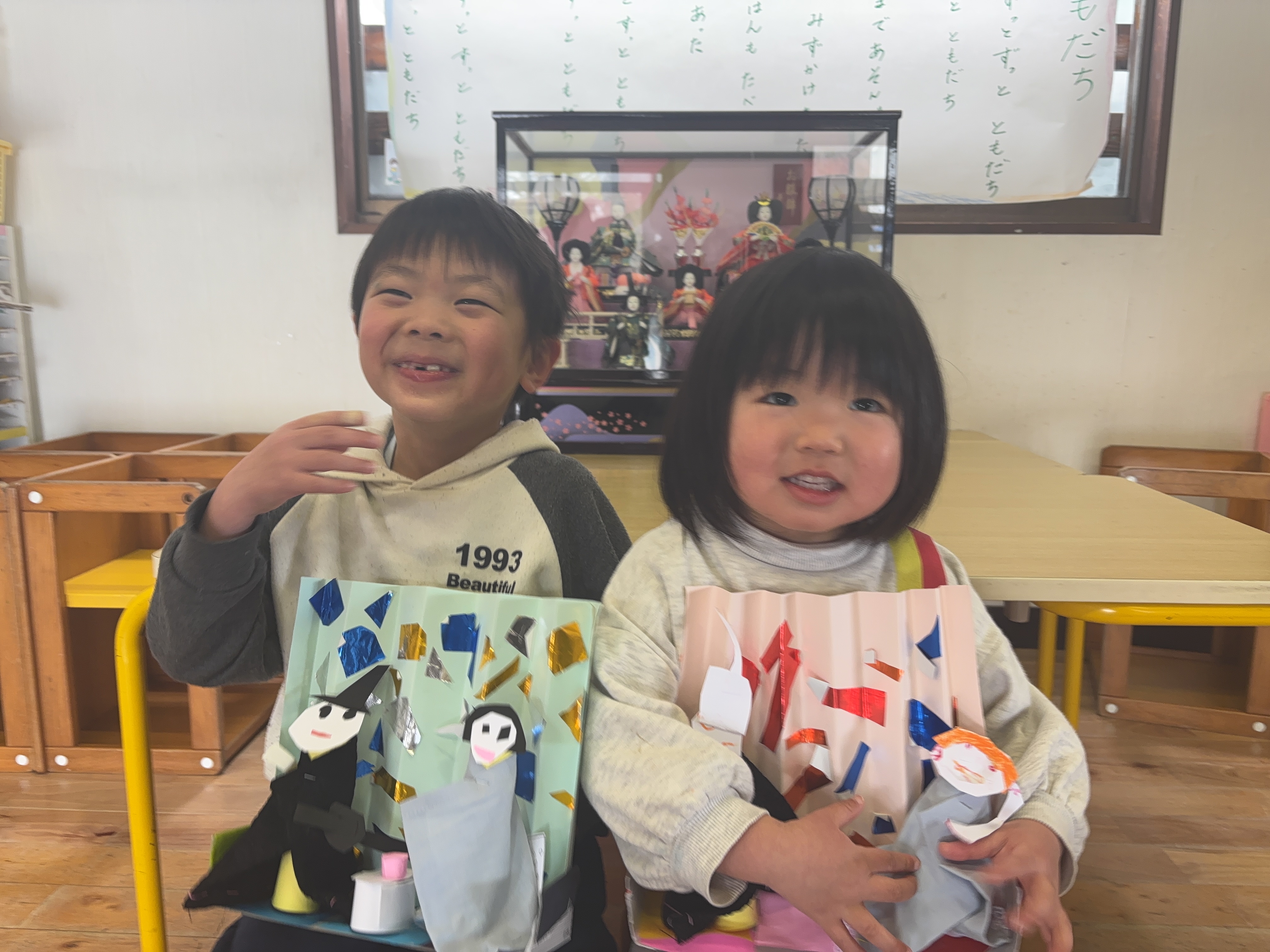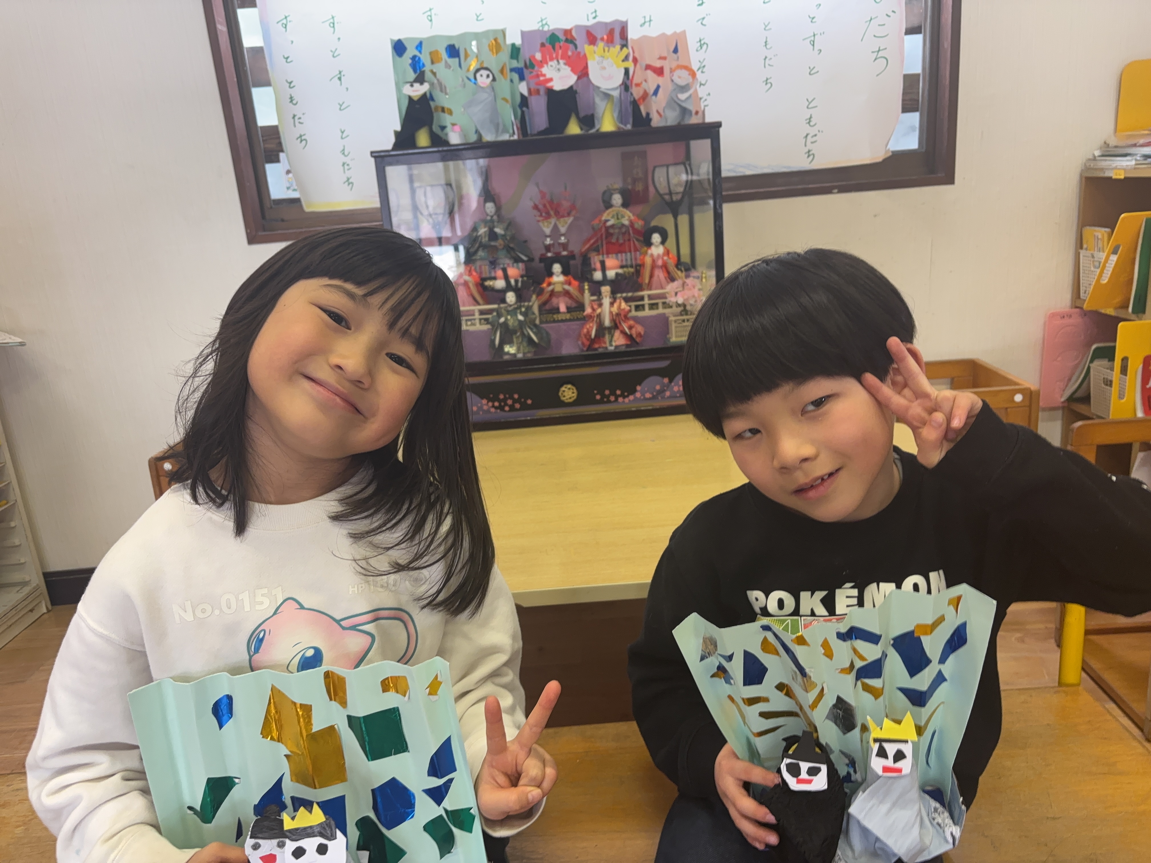 自分だけの特別なおひなさまの完成に、目をキラキラさせる子どもたちでした😊
