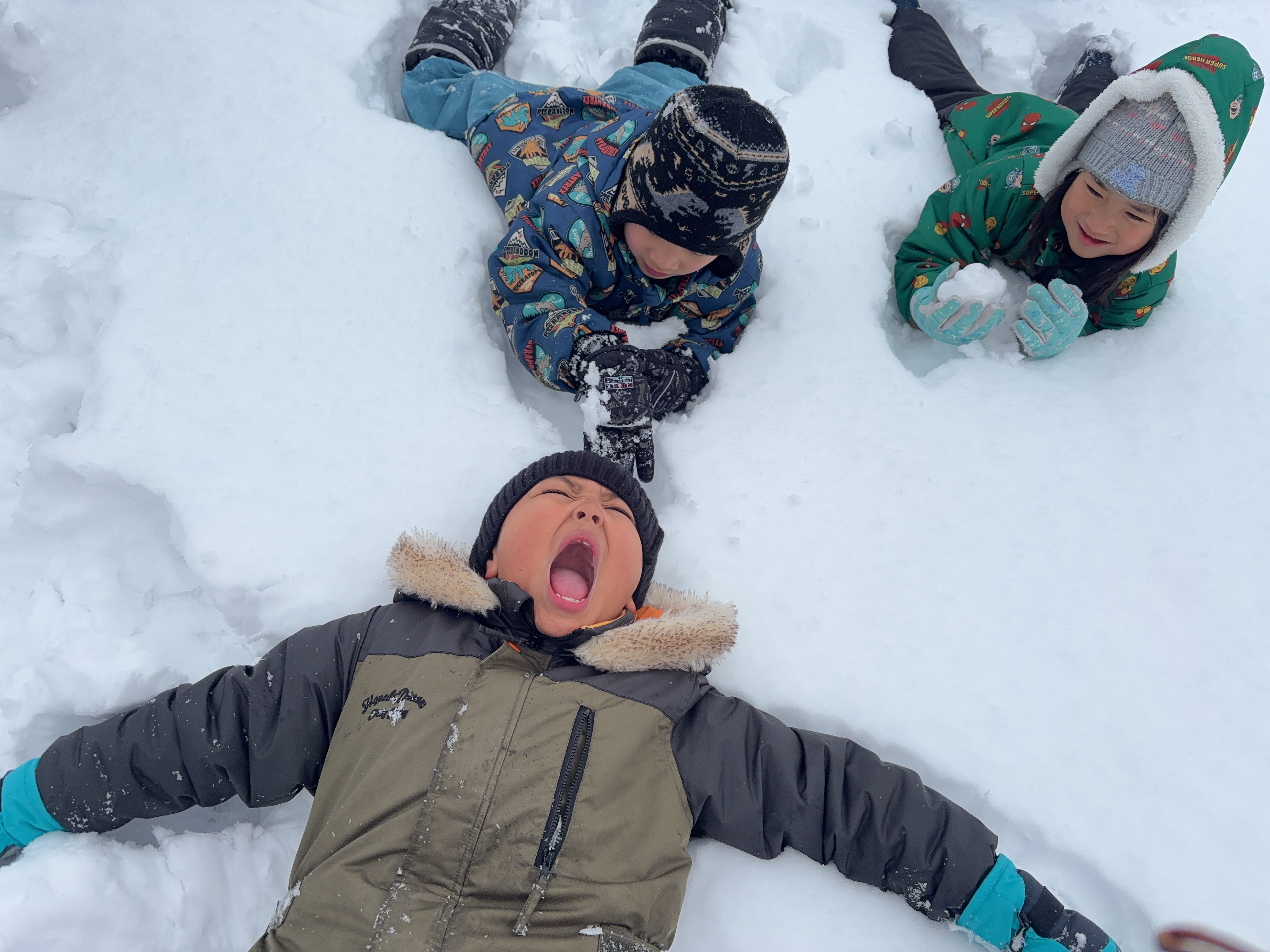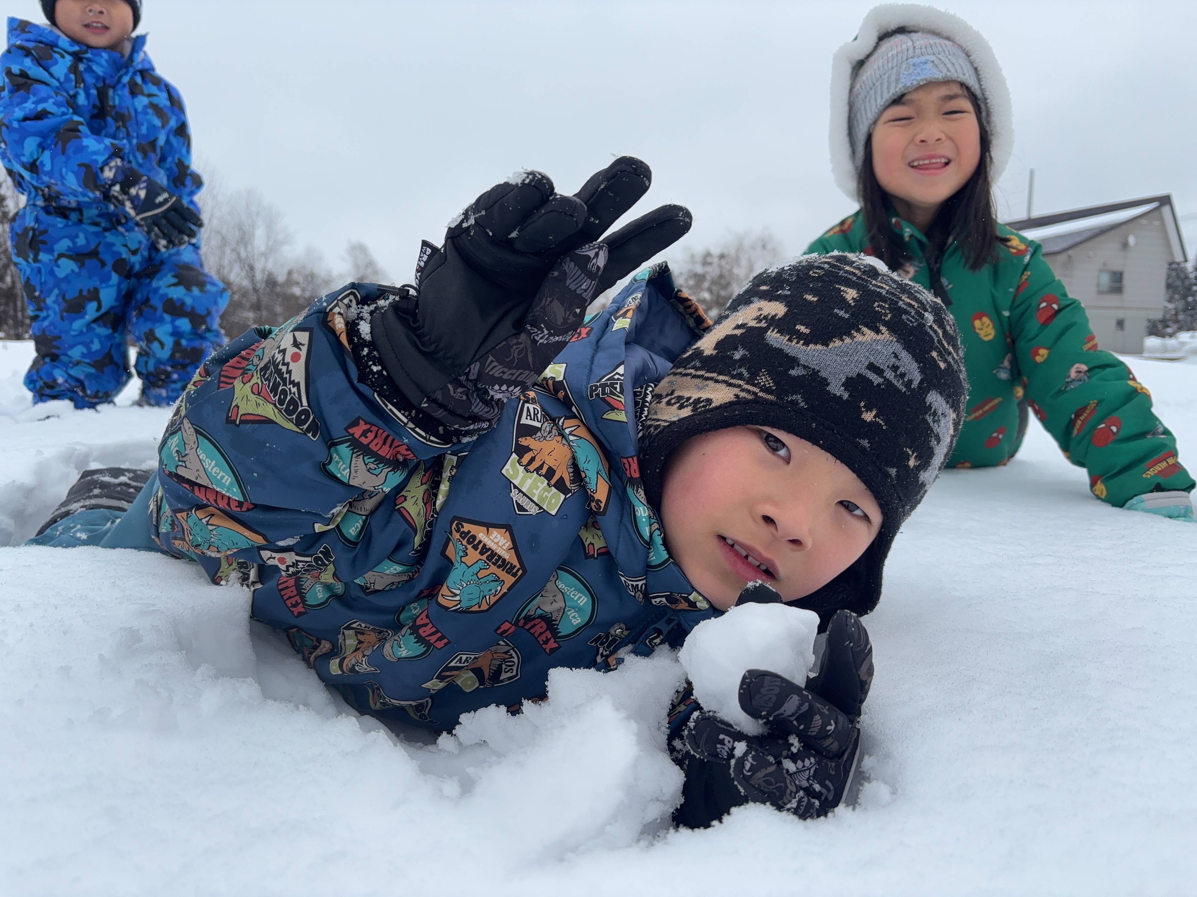 さらに「鬼ごっこしよう!?」「雪合戦も合体させた鬼ごっこだ!!!」という声に保育者は思わず笑ってしまいました😂やまびこ園はどちらかというとあちこち雪山があるのでお尻滑りが主流。グランドは広いから走りたくなるよ