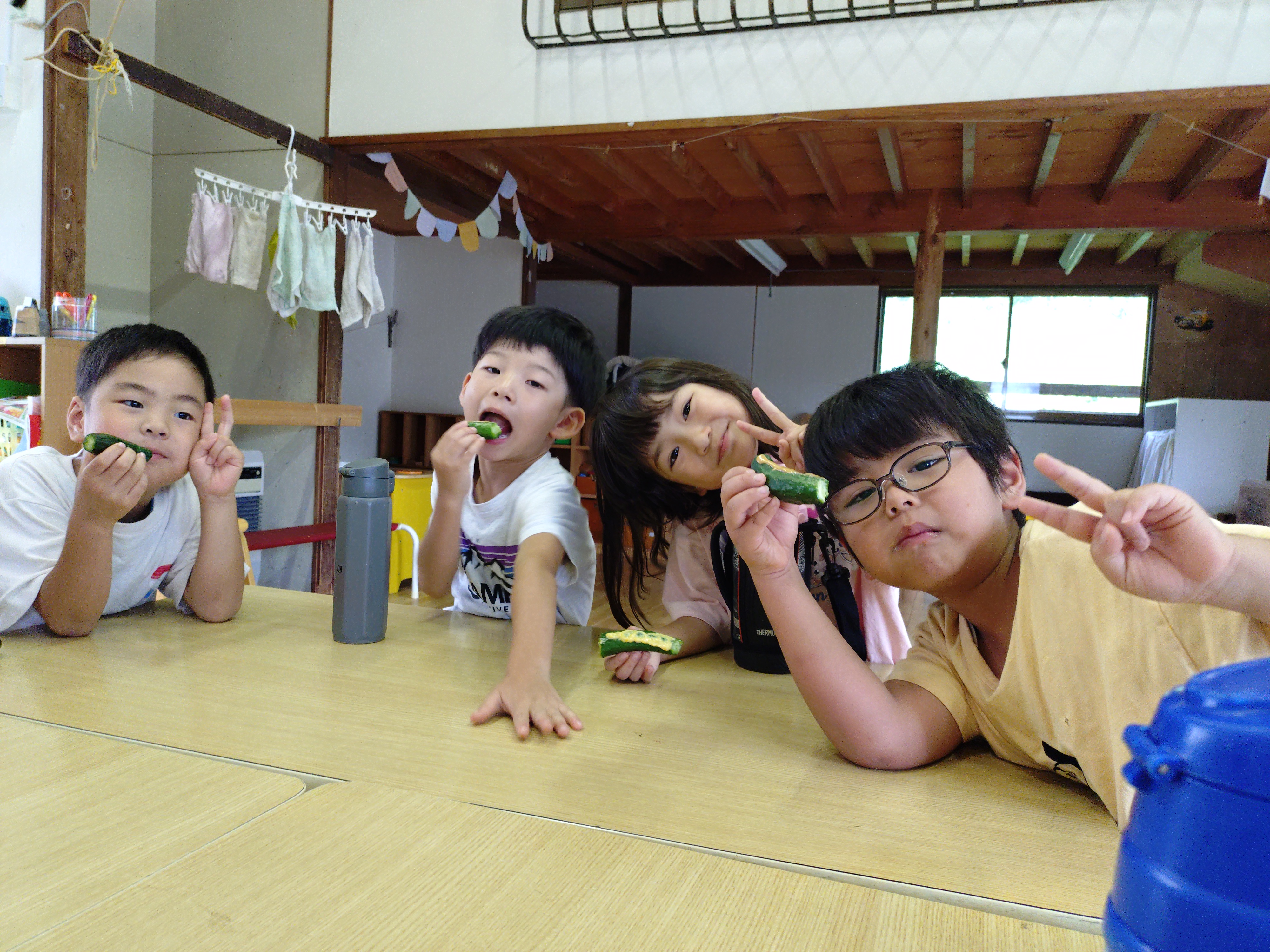 まるでかっぱのようにきゅうりをかじる子どもたちです♪