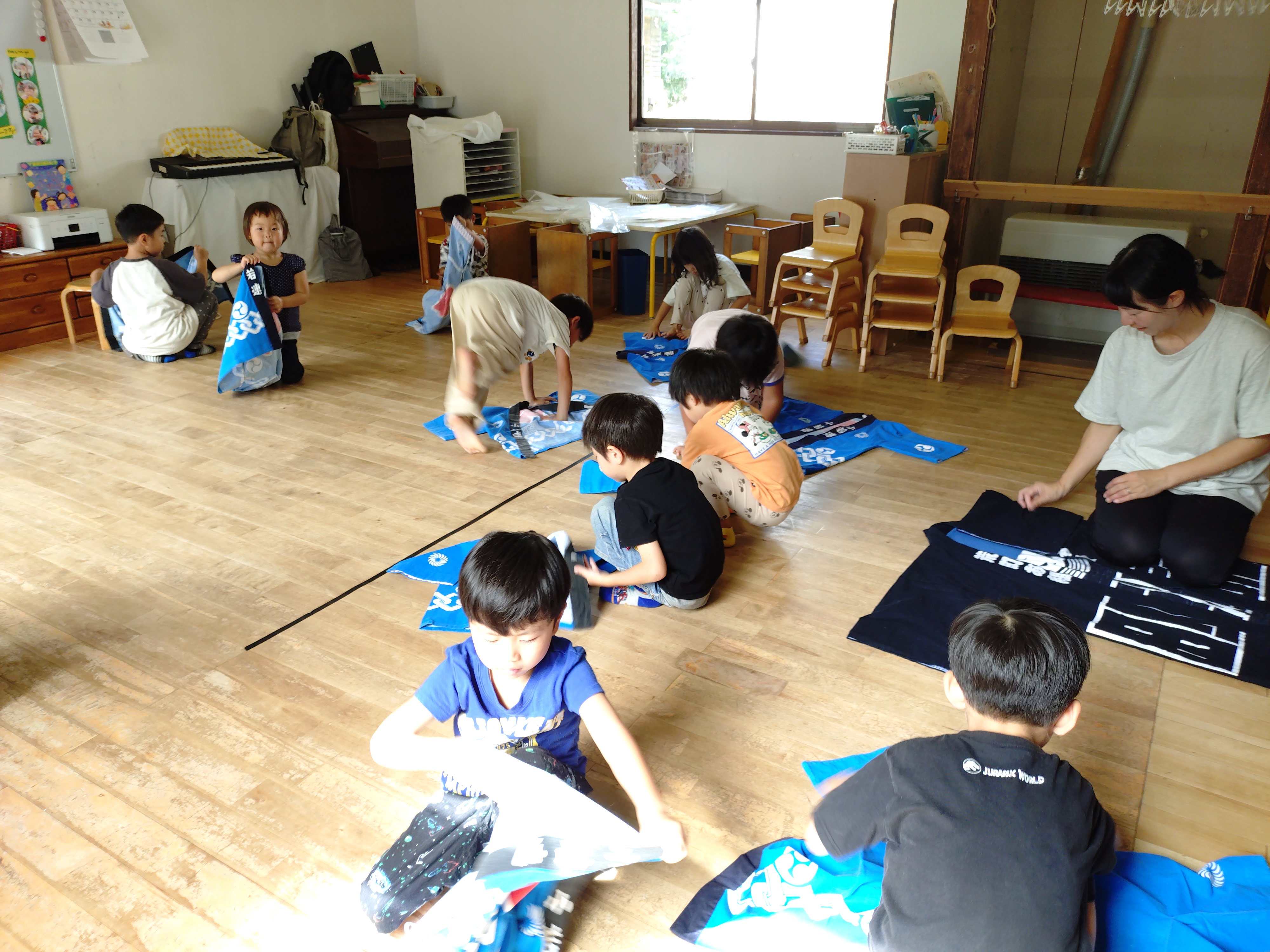 普段来ている洋服とは違うので、興味津々で「どうやるのー??」「こうかな??」と楽しそうにたたんでいました😆