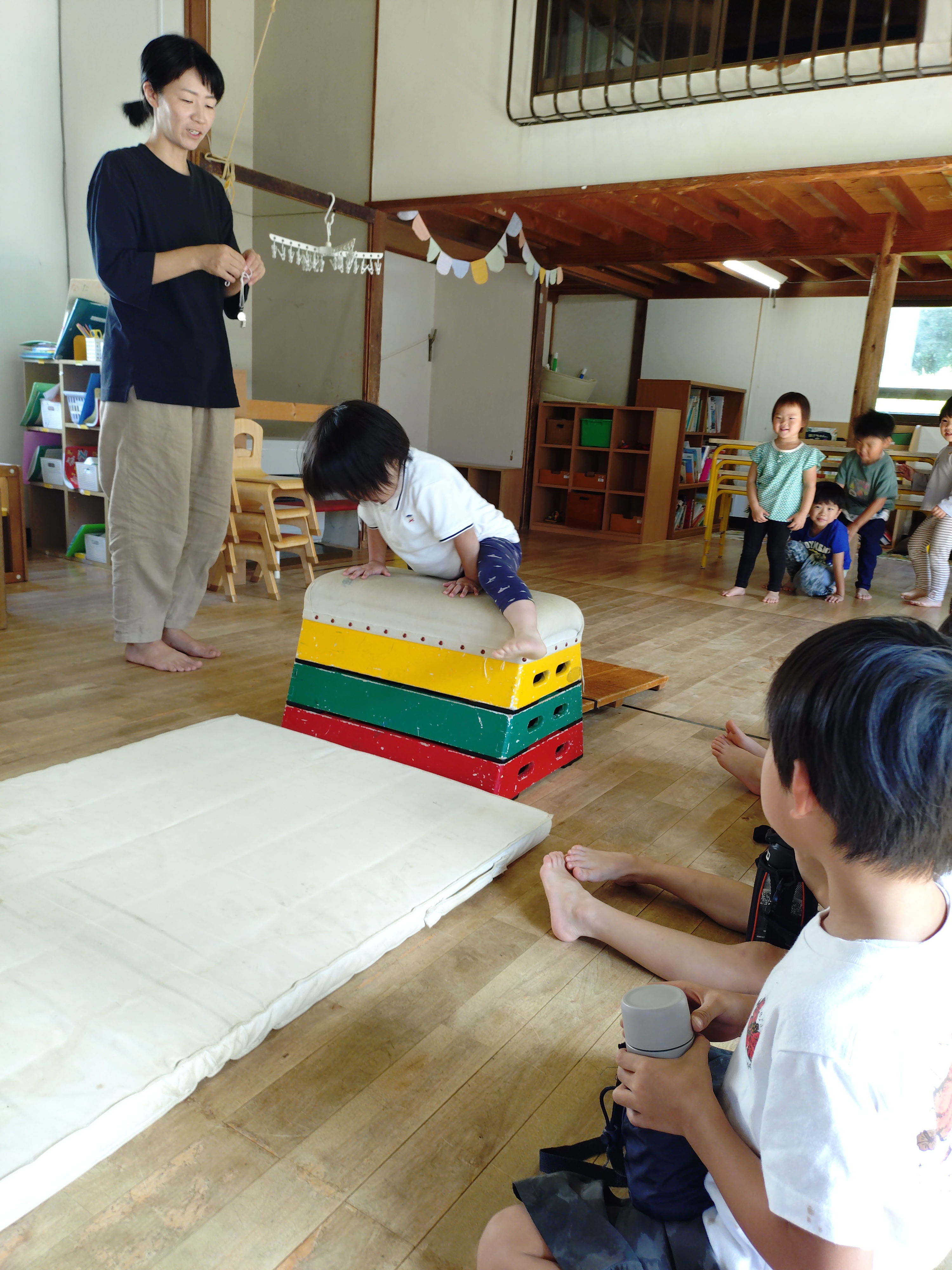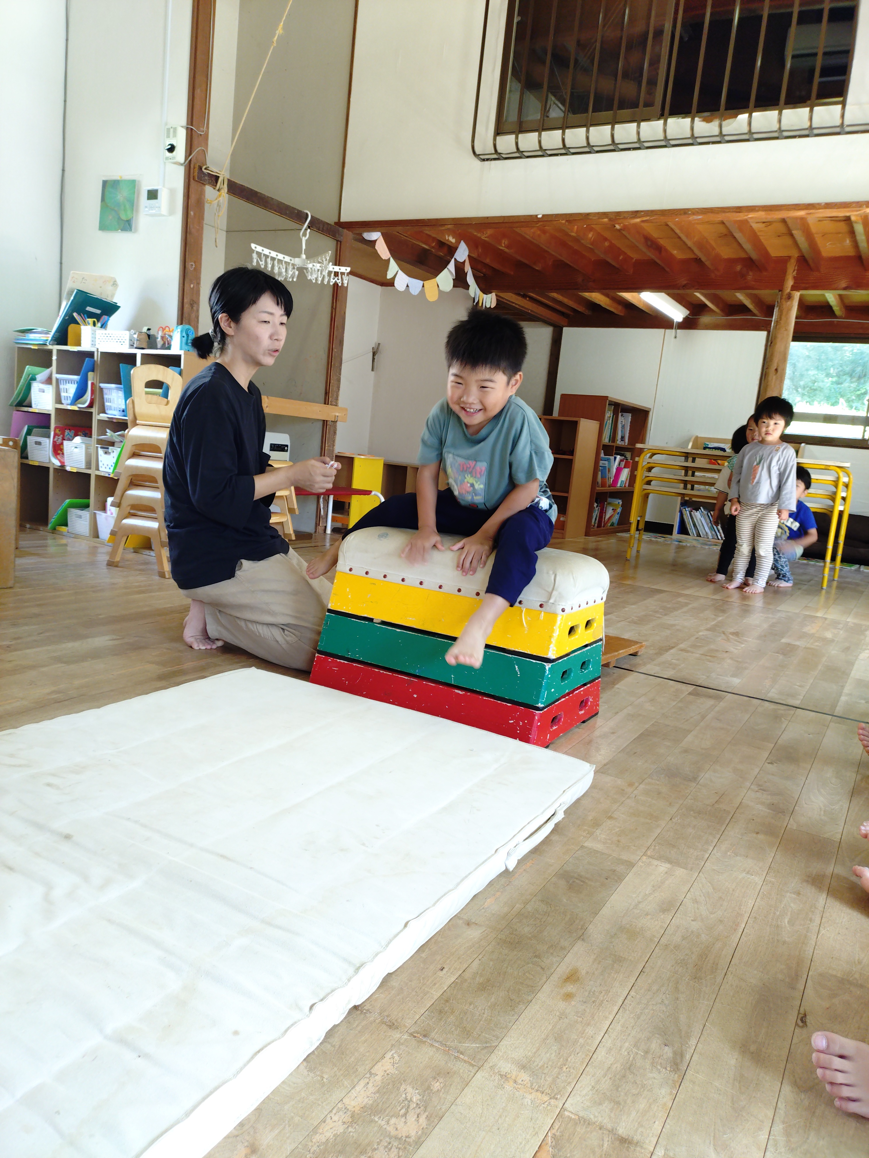 そんな姿を見て、年中さんはそれまで上ってジャンプしていたのが、まねして足を広げて跳ぼうとチャレンジ✨