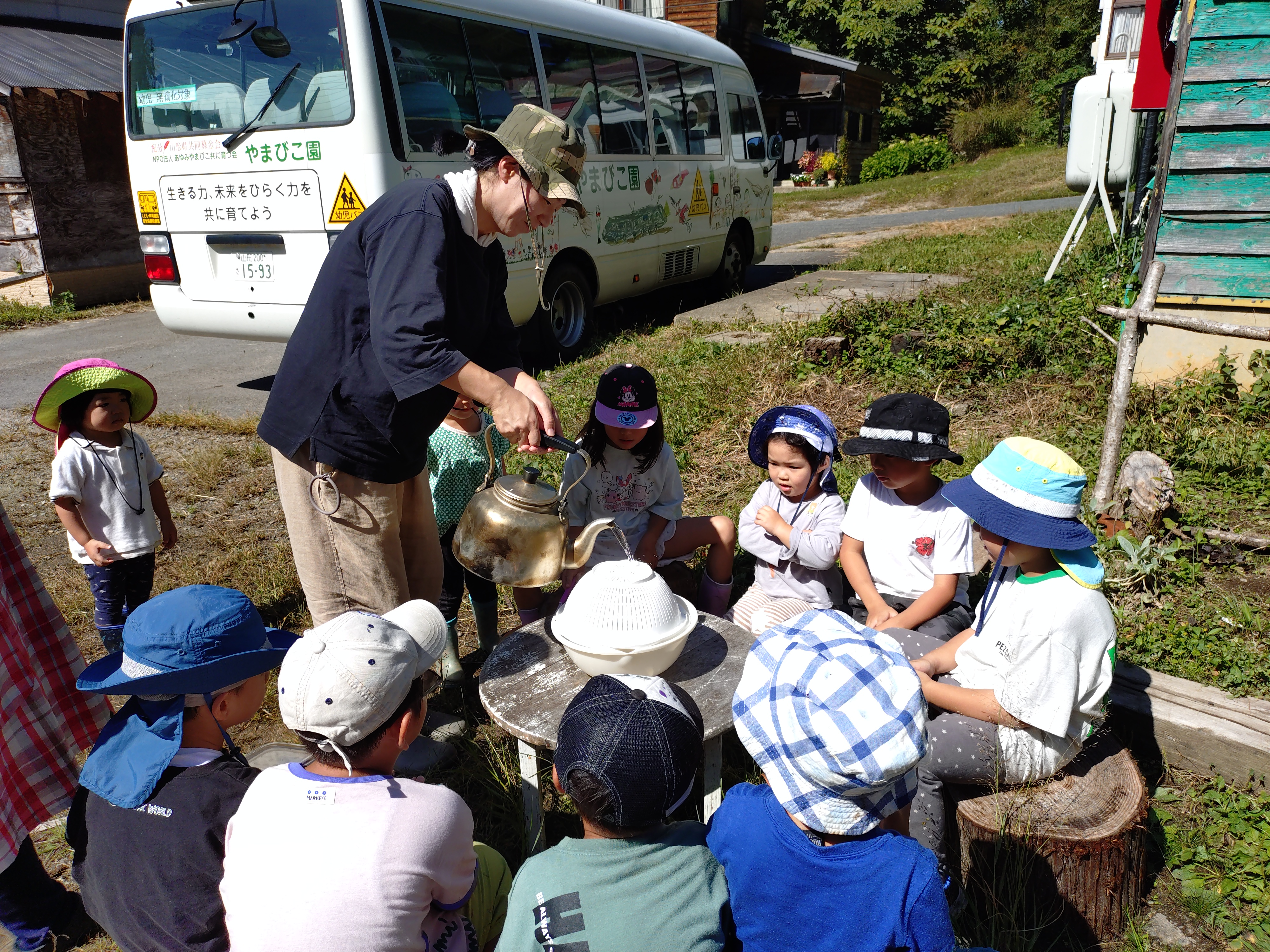 やまびこ園、秋の行事のひとつであるこのイナゴ捕りですが、このあと・・・
